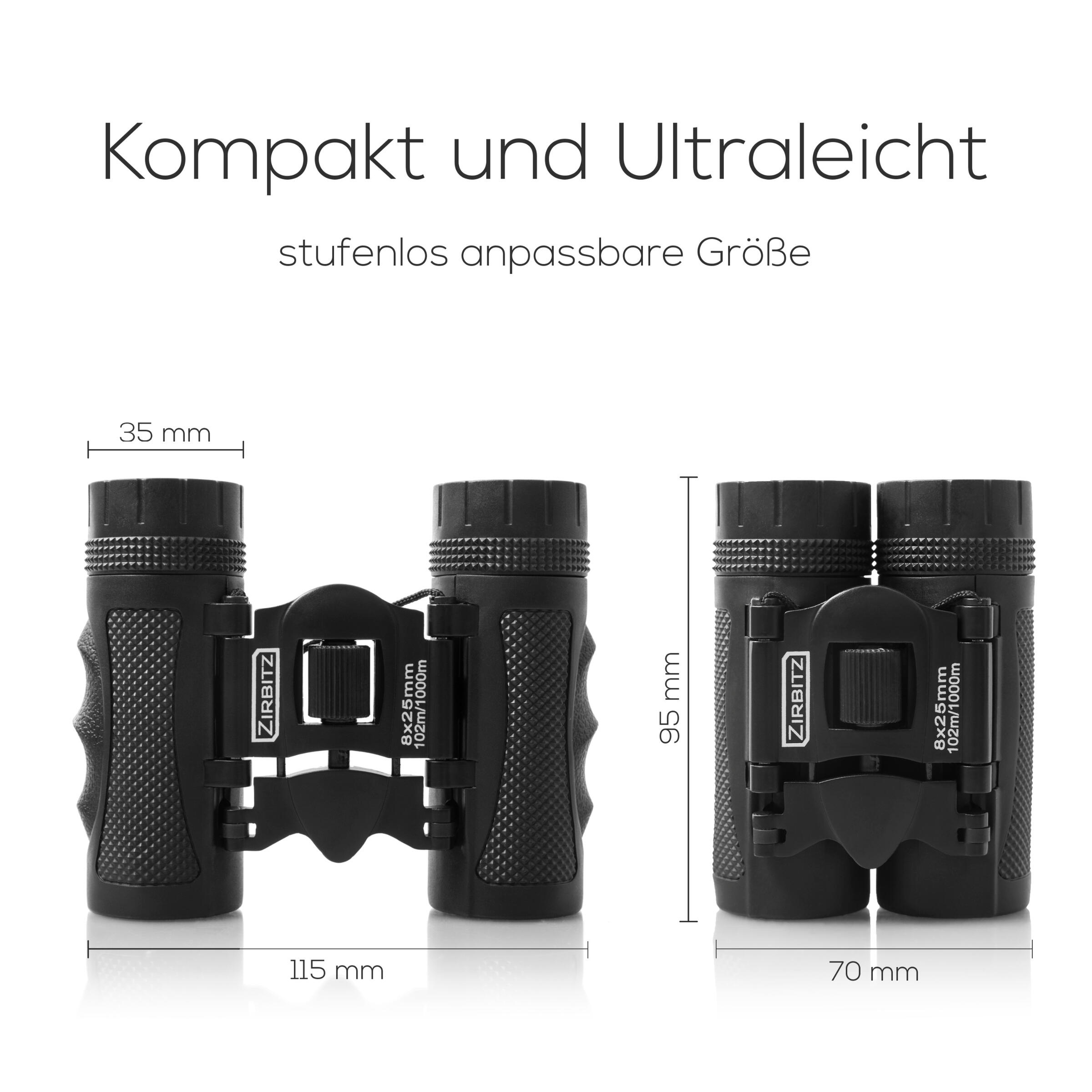 Das hochwertige Fernglas ist besonders kompakt, leicht und flexibel.Das Fernglas im Taschenformat hat einen bequemen Umhängegurt und eine Tragetasche ist ebenfalls im Lieferumfang enthalten.